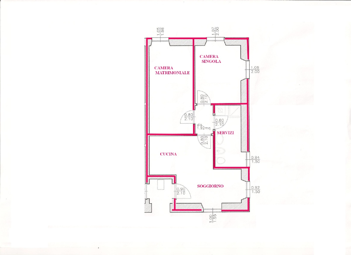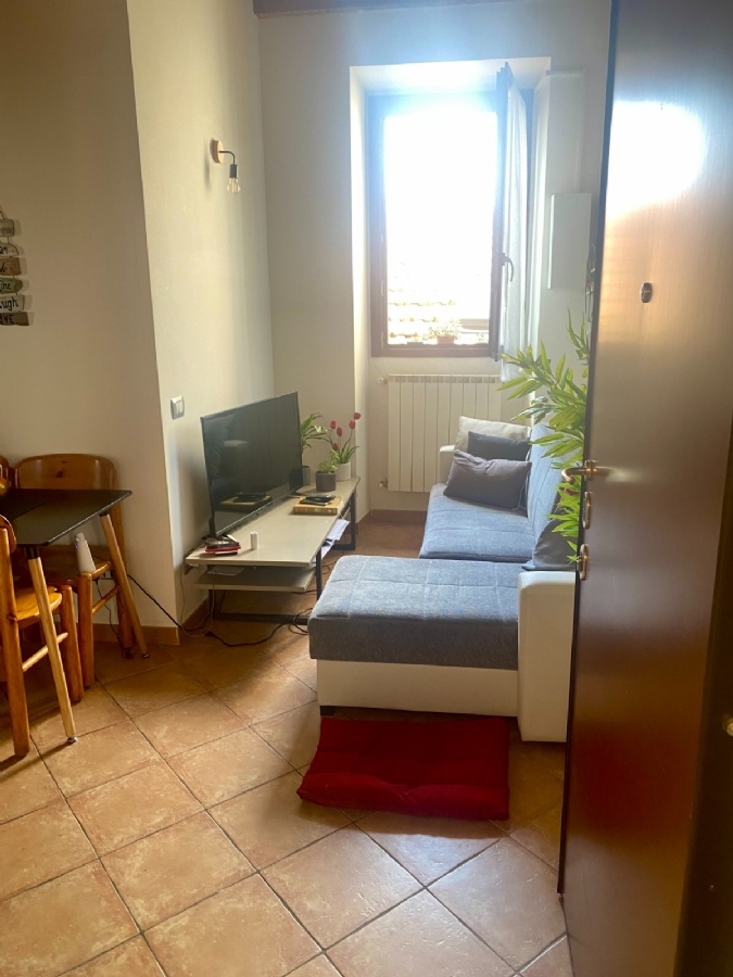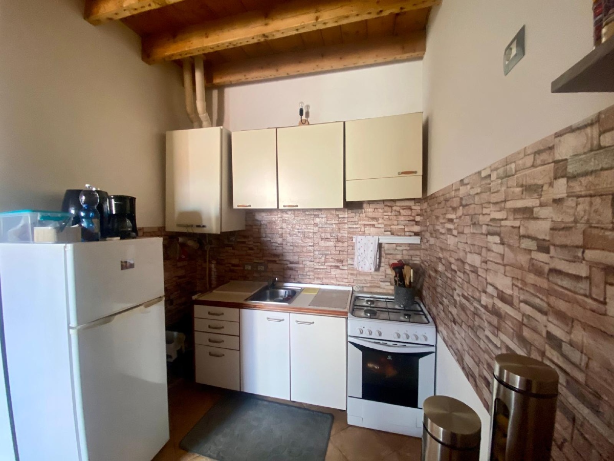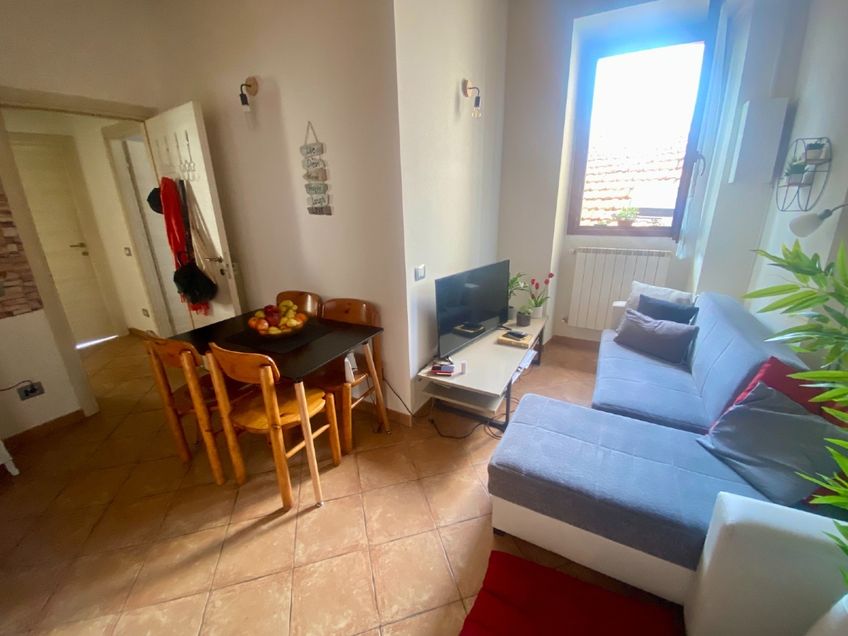 Trilocale in corte ben riservata e ben abitata di 63 mq, composto da soggiorno con angolo cottura, disimpegno, camera matrimoniale, seconda camera matrimoniale e bagno con doccia. L’appartamento è completamente arredato, con riscaldamento termoautonomo e senza spese condominiali. Si trova all’ultimo piano e dispone di un sottotetto ad uso esclusivo con accesso da botola interna. La corte, risalente agli anni ’60, offre un posto auto in area comune (non privato).