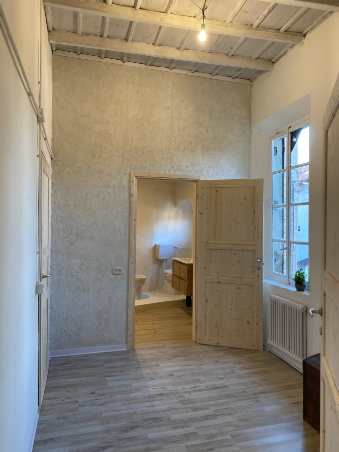 In contesto di corte senza spese condominiali proponiamo appartamento di circa 80 mq al primo piano ideale per chi cerca indipendenza e tranquillità composto da luminosa zona giorno con soggiorno e angolo cottura, ampio disimpegno, bagno con doccia dal sapore unico completamente ristrutturato e spaziosa camera matrimoniale con possibilità di realizzare un bagno en suite o una comoda cabina armadio