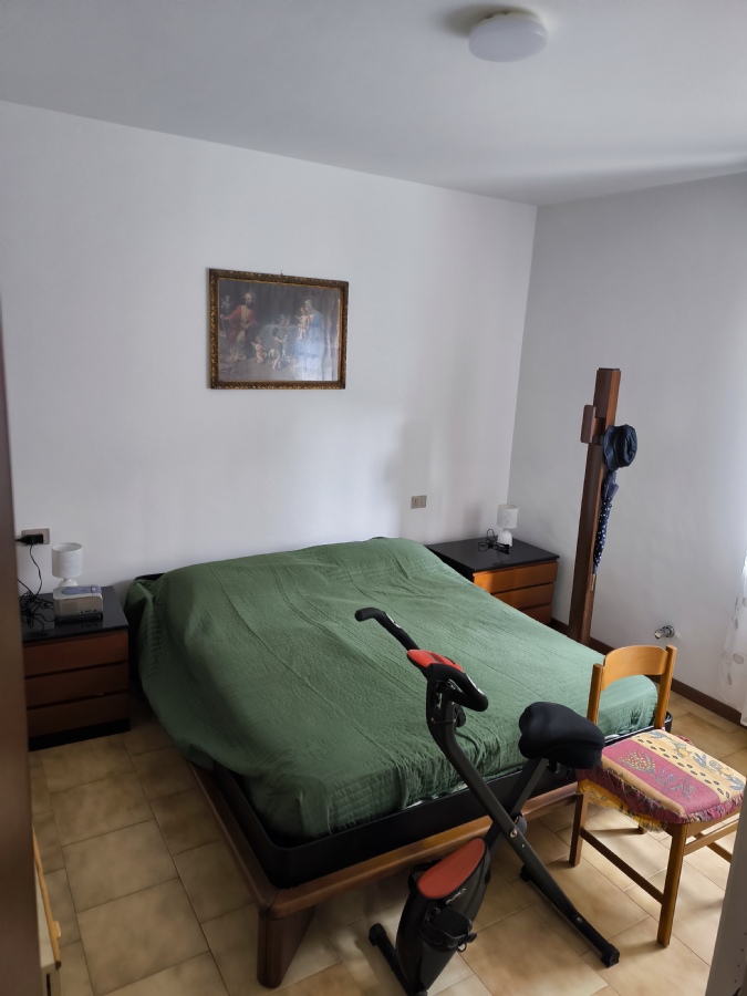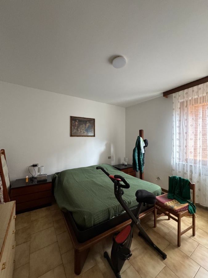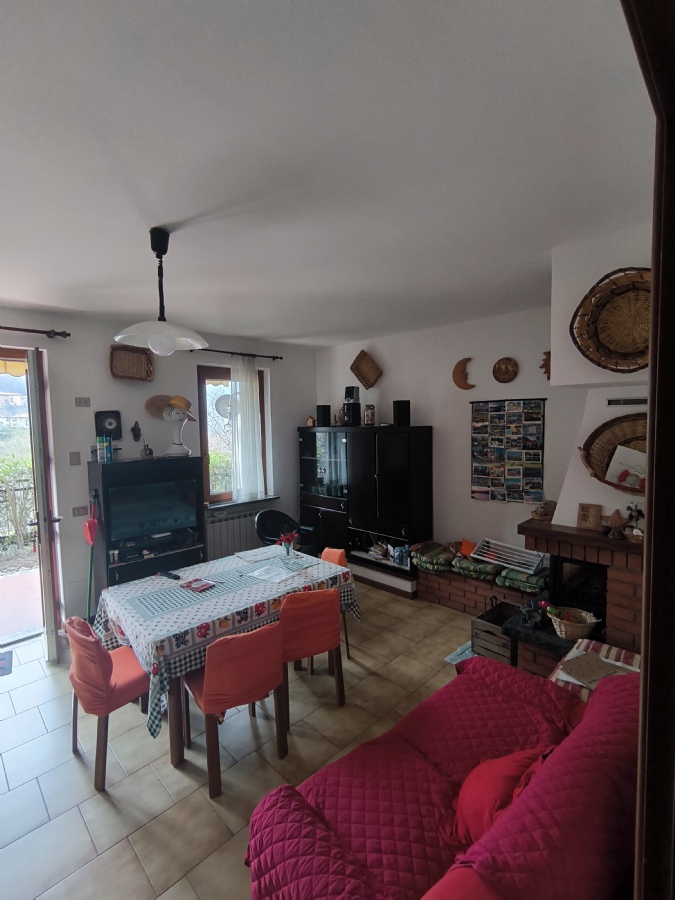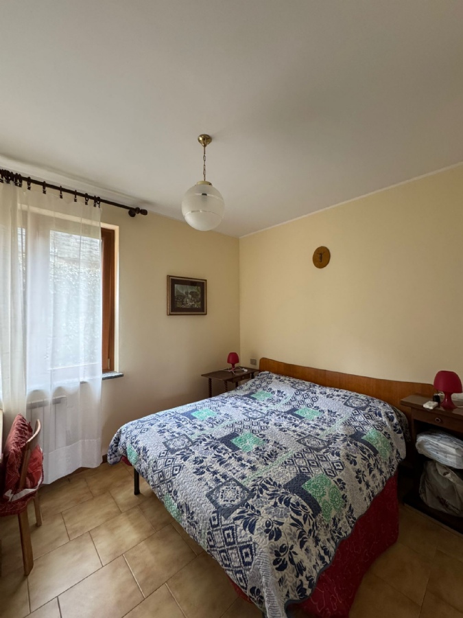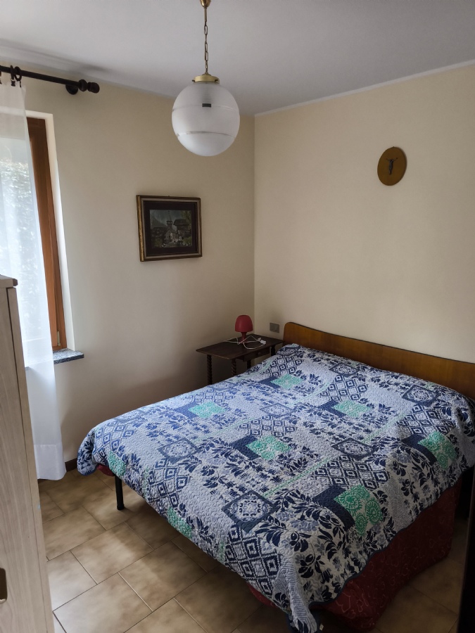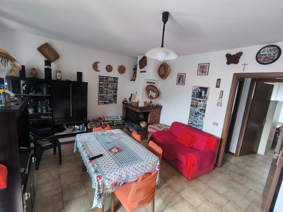 L’appartamento è composto da soggiorno con camino, cucina a vista, due camere da letto e bagno finestrato con doccia.